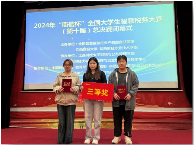 图12学生参加2024年“衡信杯”大学生智慧税务大赛总决赛获全国三等奖