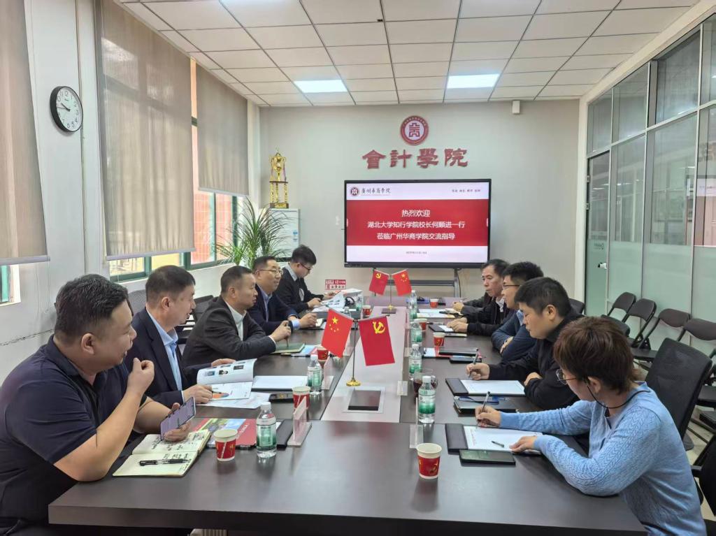 2025年11月14日,湖北大学知行学院校长何顺进,教务处长易有明,太阳成tyc9728集团院长刘容一行4人在正誉企业管理(广东)集团股份有限公司董事长鲁银花、副总裁熊浩等陪同下来我校交流,tyc太阳成9728集团副校长余家军,太阳成tyc9728集团院长姚凤民等热情接待了何顺进校长一行。