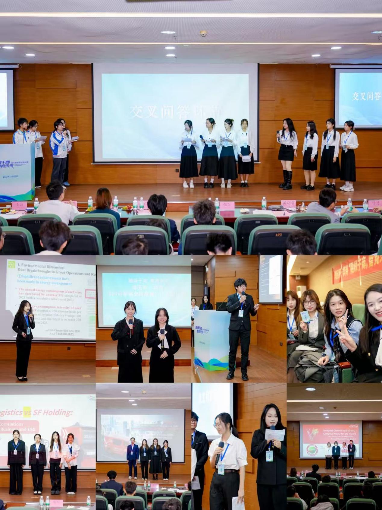决赛环节,各参赛队伍围绕京东物流、吉利汽车、奈雪的茶、可口可乐、阿里巴巴、苹果知名企业案例,展开了10分钟全英文案例陈述与5分钟PK辩论。从环境责任到社会治理,队员们以流利英文和专业分析解构ESG问题,展现了全球化视野与创新思维。评委团由企业高管和高校专家组成,实时打分并提供专业反馈。