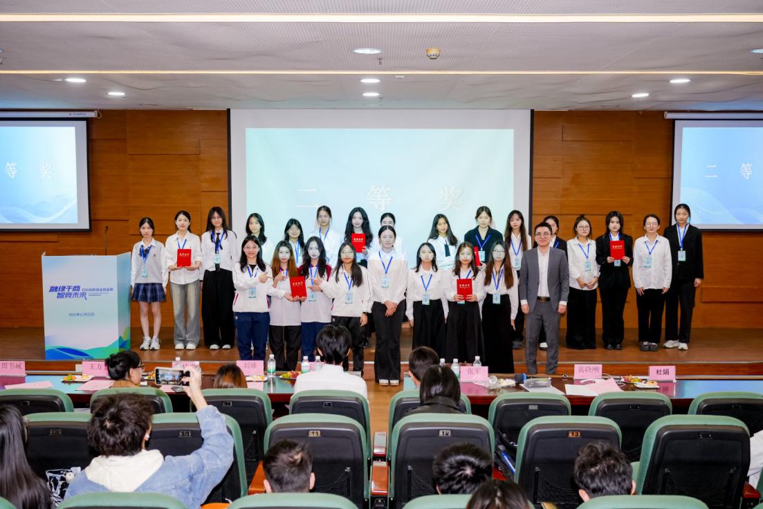 嘉宾们为获奖队伍及个人颁发奖牌、荣誉证书与奖金,志愿者引导上台合影留念,定格荣耀时刻。