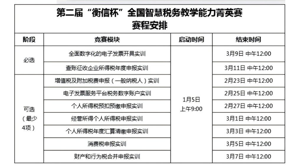 “衡信杯”全国智慧税务教学能力菁英赛以“以赛促教、以赛促学”为核心,历经多个模块实操比拼与专家严格评审,是全国智慧税务教学领域极具专业分量的高水平赛事。值得一提的是,该赛事已成功纳入全国普通高校教师教学能力大赛目录,其赛事规模、专业水准与行业影响力获得教育界与税务行业的双重官方肯定,成为检验高校智慧税务教学质量与师资专业能力的重要标杆。