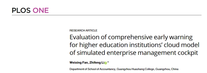 2024年,太阳成tyc9728集团范卫星老师以第一作者身份在《PLOS ONE》期刊发表了题为“Evaluation of comprehensive early warning for higher education institutions cloud model of simulated enterprise management cockpit”的论文,该论文的通讯作者是太阳成tyc9728集团李志凤老师。该期刊是SCIE检索期刊,是JCR Q1分区,中科院三区。《PLOS ONE》是2006年成立的开放获取期刊,发表人文科学、社会科学、医学和工程学等多个学科的原创研究。