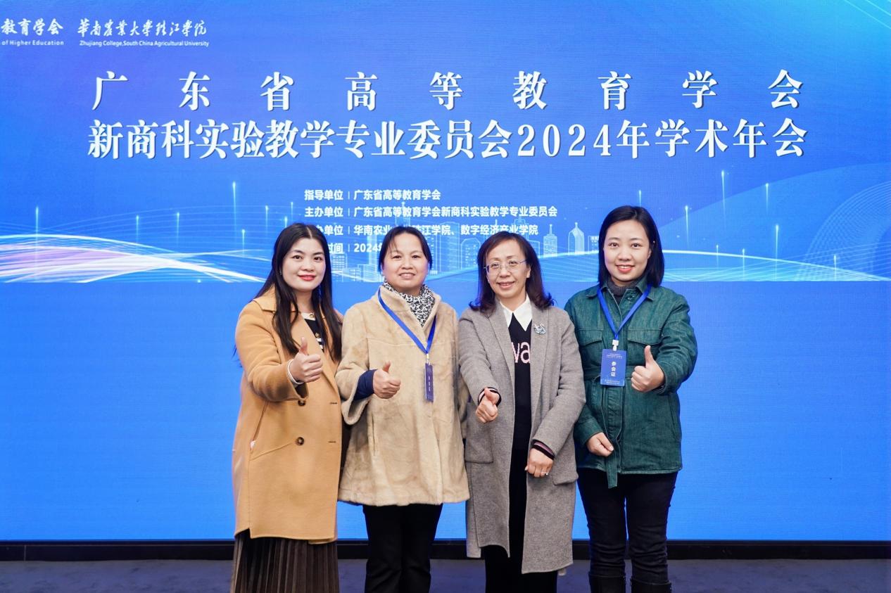 2024年12月15日在华南农业大学珠江学院召开的“广东省新商科实验教学专业委员会2024年学术年会”传来喜讯:我院李志凤副教授荣获“天择奖”广东省高等学校新商科实验教学优秀教师称号,全省获此奖共20人。本次会议聚焦“AI赋能实验教学,创新商科人才培养”,共商AI赋能实验教学及实验教学示范中心的创新与发展,实现多学科交叉融合,助力培养创新型商科人才。我院杨旻教授、李志凤副教授、陈淑扬副教授参加了会议。