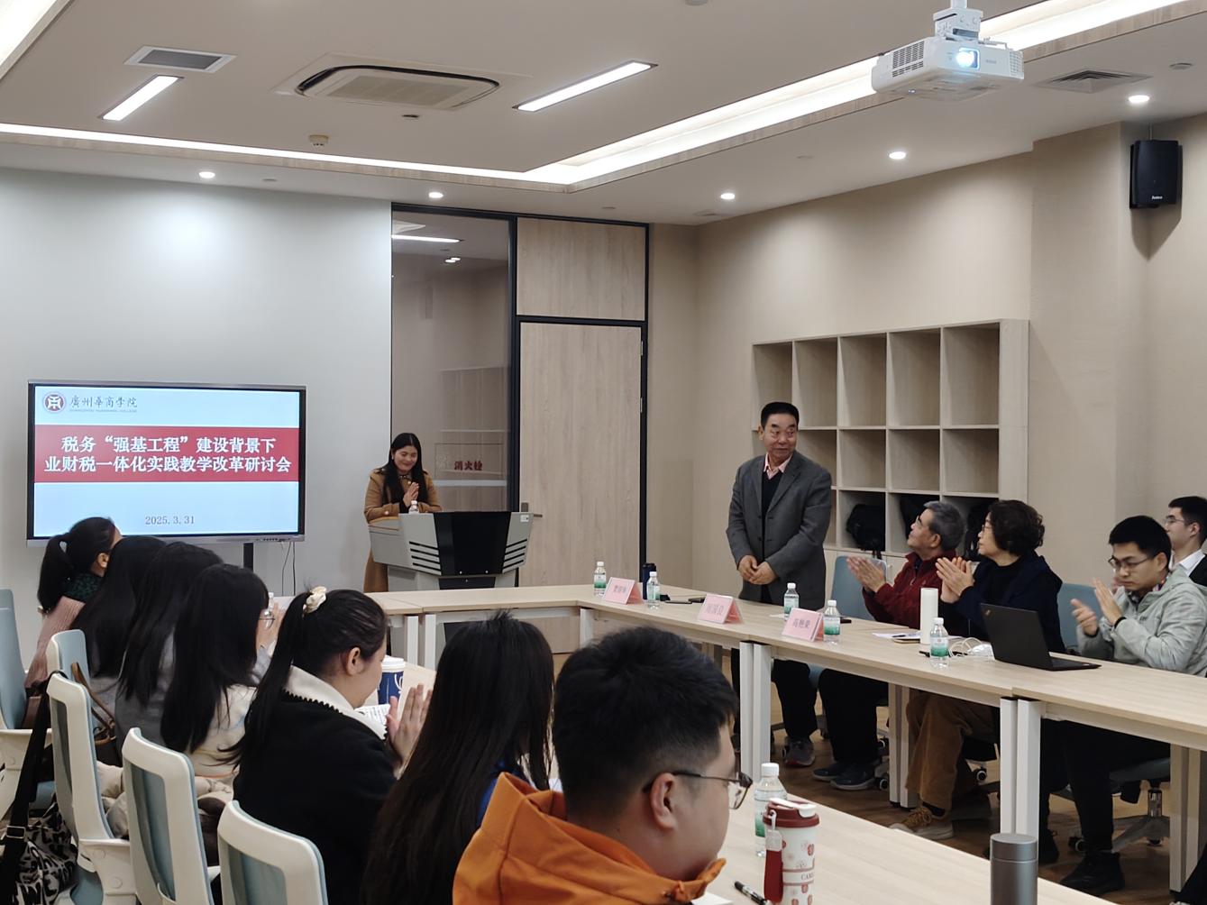 太阳成tyc9728集团税务系为提升教师“业财税”一体化教学能力、积累实践教学改革经验,4月1日下午在广州校区图书馆教师发展中心互动室5专题举办了税务“强基工程”建设背景下业财税一体化实践教学改革研讨会,活动达到了预期效果。