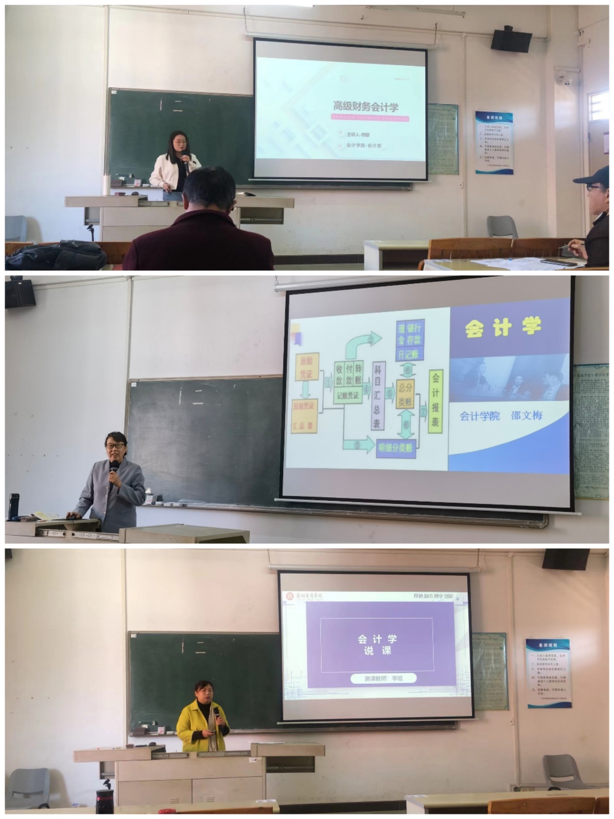 李旭副教授讲《会计学》中的“会计假设”。李教授“立德树人”的教学理念、风趣幽默的语言、生动的导学案例、线上+线下的混合式教学模式,更是让观摩的老师们受益匪浅。