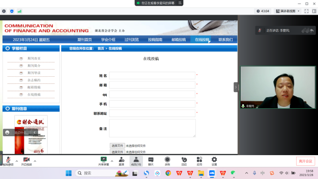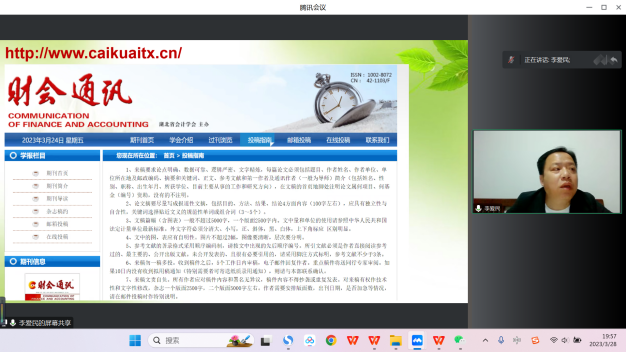 李爱民副教授对北核期刊投稿发表经验进行了分享。首先,李爱民副教授对选刊与分析期刊风格、选题方向的确定、论文署名技巧、如何关注论文投稿进度与进行修改等提高核心论文投稿成功率影响极大的关键性问题进行了详细介绍。随后,李爱民副教授以《财会通讯》期刊为例,为审计系教师完整展示了论文投稿的流程,让更多青年教师了解了核心论文的发表流程和注意事项。