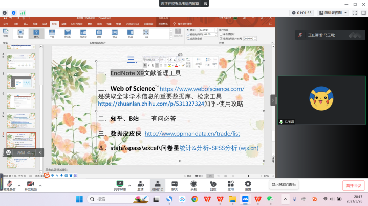 随后张丽老师结合自己的SSCI论文发表经历,对英文期刊论文发表的注意事项进行了补充,对外文期刊的选题偏好和对参考文献格式以及来源的要求进行了介绍。