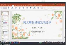 接下来马玉娟老师进行英文期刊投稿发表经验分享。马老师基于自己在Frontiers in Environmental Science上发表SSCI论文的经历,为审计系教师细致地介绍了如何利用LETPUB选期刊、如何在目标期刊官网上注册账号并投稿,到如何选择工具对文章进行翻译润色,以及投稿后如何回复编辑修改意见及发表整个过程中应注意的要点,为老师们以后的英文论文发表提供了清晰的指引。
