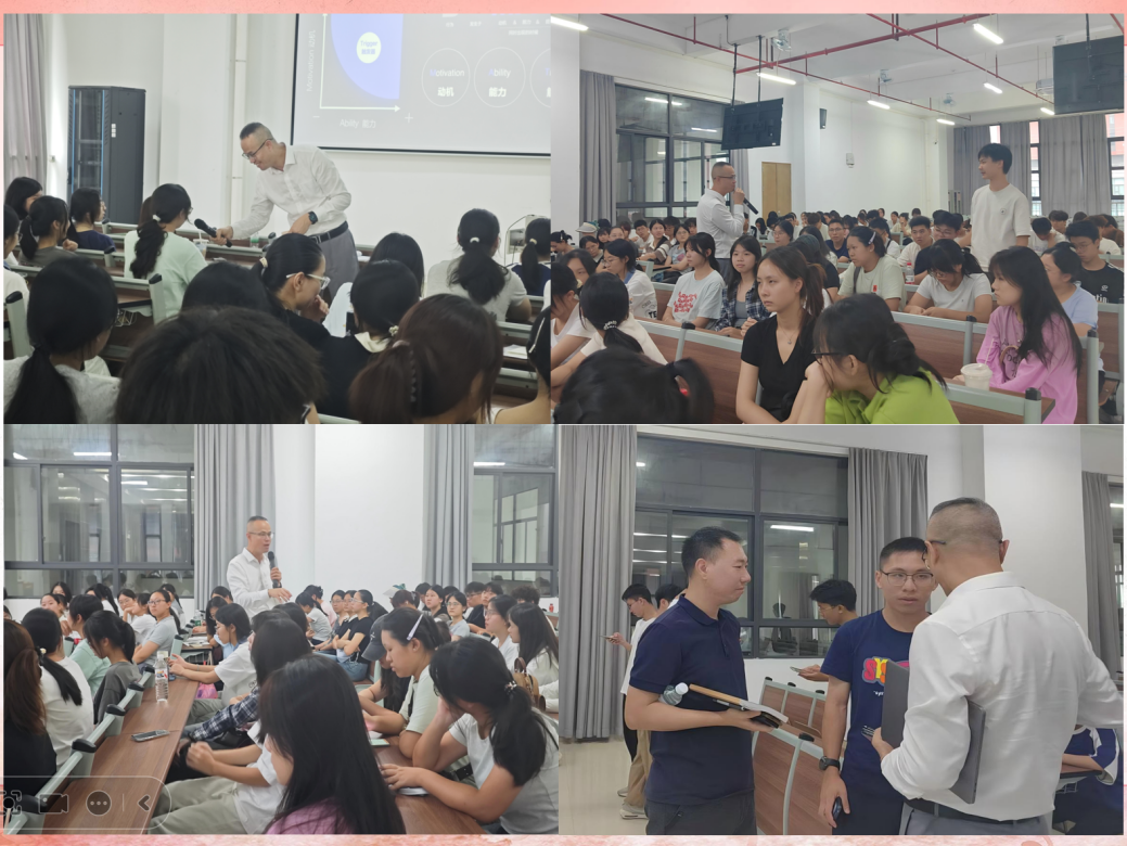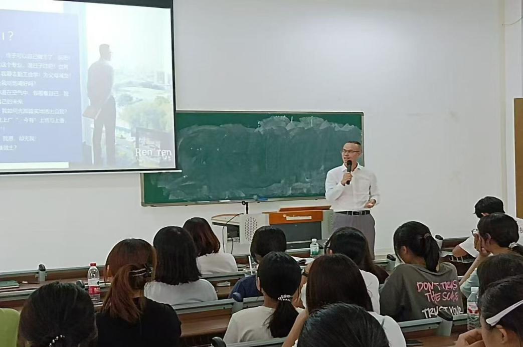 在职业规划教育环节,广东人啊人网络技术开发有限公司CEO温建林先生以“财务管理专业大学生职业生涯规划”为题开展讲座。他结合个人职场经历和人才发展研究,强调职业生涯规划应从自我认知出发,明确目标定位、路径设计与动态调整。温总还分享了MBTI、T12人才测评等实用工具,鼓励同学们尽早确立发展方向,持续提升综合素养,增强就业竞争力。