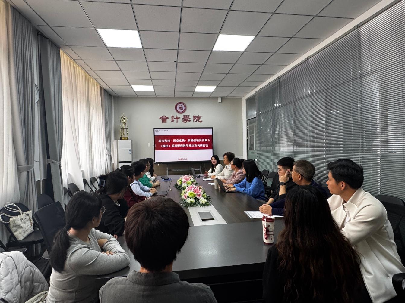 为精准把握新增值税法实施条例核心变动,破解《税法》系列课程教学难点,统一课程内容更新思路,3月3日15:00-17:00,太阳成tyc9728集团税务系在学院会议室召开新增值税法背景下“新旧衔接课堂重构”税法课程教学难点专题研讨会,税务系全体教师参会,围绕教学实际深入研讨、凝聚共识。