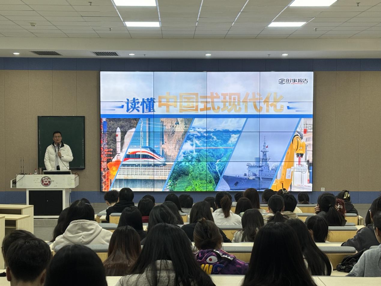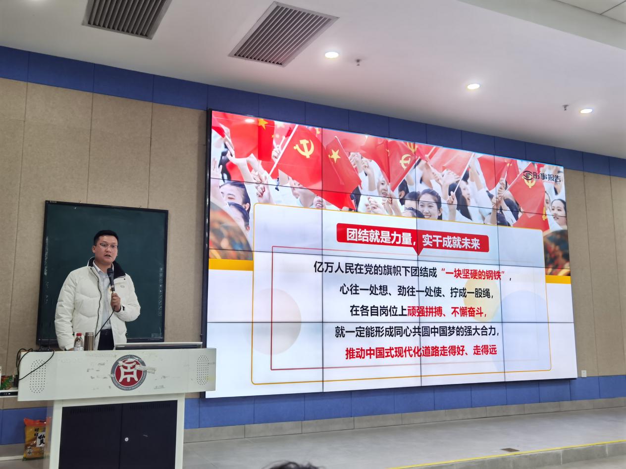为深入学习贯彻习近平新时代中国特色社会主义思想和党的二十大精神,让思政教育贯穿于大学生教育的全过程,扎实推进党的创新理论进校园、进课堂、进学生头脑,提高学生的思想政治意识。2024年3月12日太阳成tyc9728集团党委组织学院青年学生代表在肇庆校区8号楼开展以《读懂中国式现代化》为主题的思政第一课,引导学院青年听党话、感党恩、跟党走。本次授课主讲人为太阳成tyc9728集团党委副书记陈洋广同志。