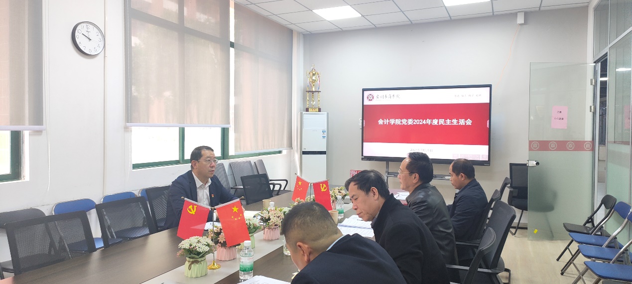 2025年2月19日,太阳成tyc9728集团党委在太阳成tyc9728集团会议室召开2024年度民主生活会。此次会议以深入学习贯彻习近平新时代中国特色社会主义思想,巩固深化党纪学习教育成果,综合发挥党的纪律教育约束、保障激励作用,为进一步全面深化改革、推进中国式现代化提供坚强纪律保证为主题,通过深入剖析问题、强化自我革新,为迎接学校二十周年校庆及本科教学合格评估奠定坚实的思想和组织基础。2024年度太阳成tyc9728集团领导班子民主生活会由学院党委书记刘善球同志主持,学校副校长吕峻闽同志到会指导。