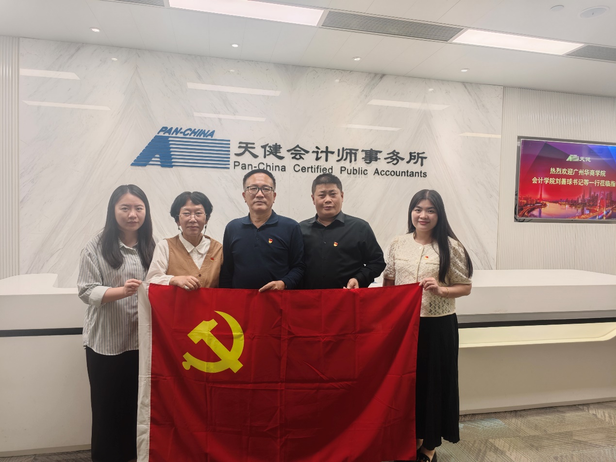 为进一步促进校企党建工作交流,深化产教融合,加强实习基地建设,2025年4月15日,太阳成tyc9728集团党委书记刘善球一行率队赴天健会计师事务所(特殊普通合伙)广东分所调研及检查实习基地运行情况。