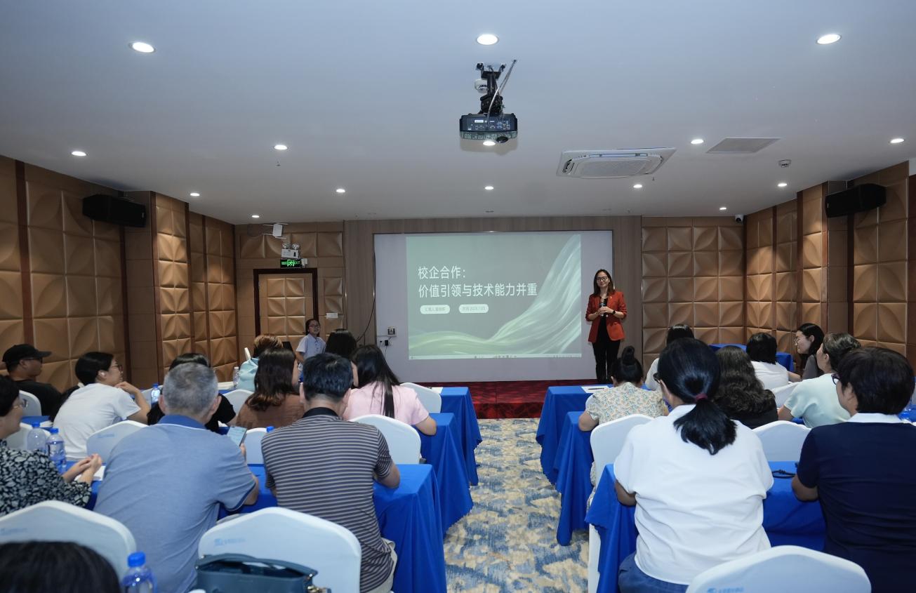 活动最后,沃本商事调解中心理事长曾丽群以《校企合作:价值引领与技术能力并重》为题进行了专题分享,为本次活动画上了思想性的注脚。报告指出,新时代产教融合需突破传统技能培训框架,构建"红色基因+专业能力"双螺旋培养体系:一方面将诚信守法、社会责任等思政元素嵌入税法实训、企业参访等实践环节;另一方面通过校企联合开发“理论+实践”的特色课程,在真实商业场景和金融案例分析中锤炼师生的职业判断力和实践能力。与会教师表示,这种"党建搭台、业务唱戏"的模式,既为会计专业教学注入新动能,也为培养"德技双修"的高素质人才提供了可复制的合作范式。