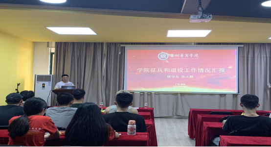 随后,辅导员张大鹏详细介绍了学院征兵和退役工作情况。他介绍了学院在征兵宣传、组织报名、选拔培养等方面的做法和成效,并分享了退役学生在学院的资助奖励、学习生活和发展情况。通过张大鹏老师的汇报,大家更加深入地了解了学院在征兵和退役学生工作方面的努力和成果。同时号召退役学生们能够积极参与到学院征兵宣传工作中,为学院征兵工作添砖加瓦。
