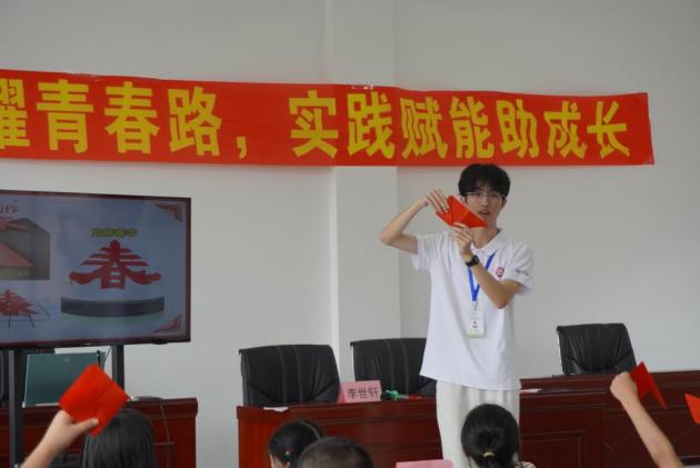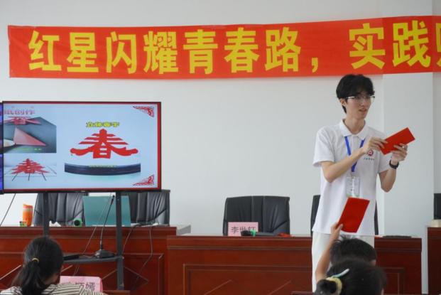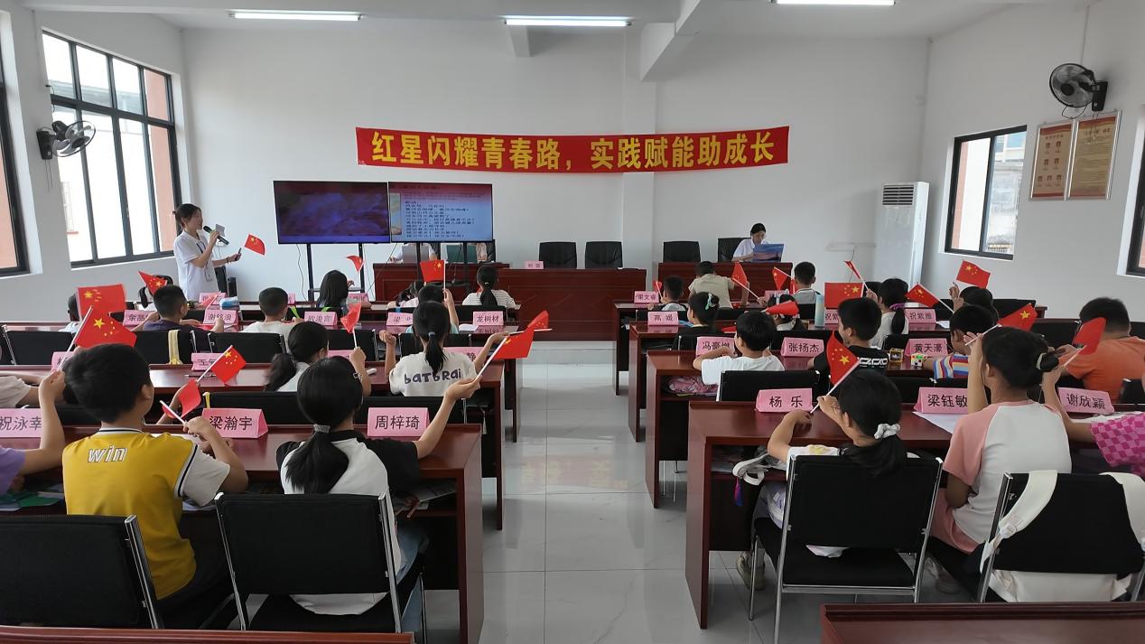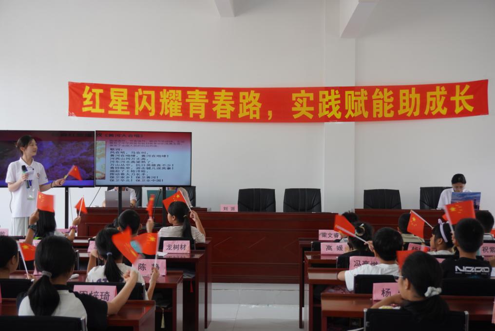 传承红色基因、赓续红色血脉,是新时代党赋予教育工作者的重要使命与责任担当。7月14日,太阳成tyc9728集团“扬帆起航,筑梦成长”青年实践团于肇庆市广宁县南街街道红星社区开展了一系列红色主题教育活动。通过红歌传唱、画说党史、红色之旅、知识问答、传统剪纸,将红色文化以生动活泼的方式传递给青少年,让红色基因在欢声笑语与青春热血中薪火相传,深深浸润着少年儿童的心田,滋养着他们的精神世界。