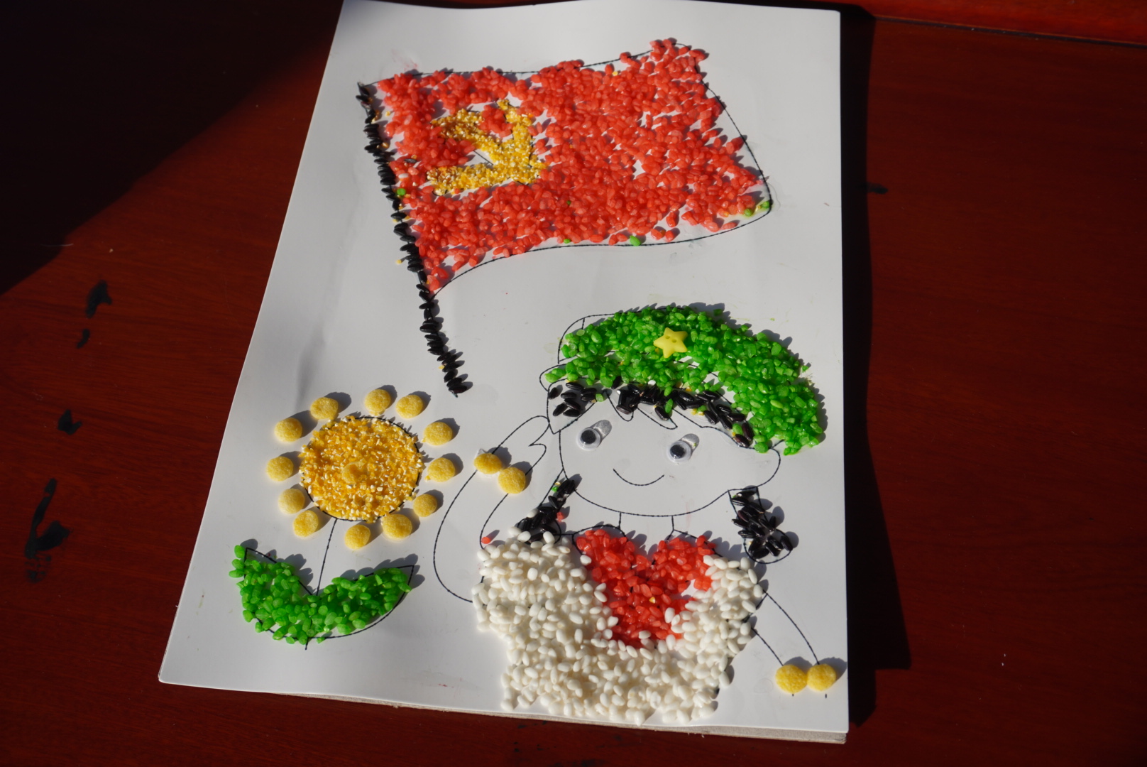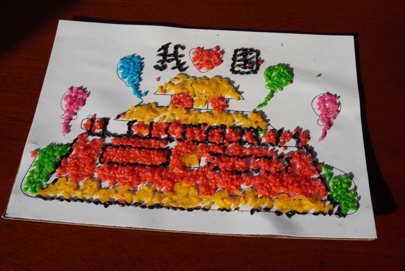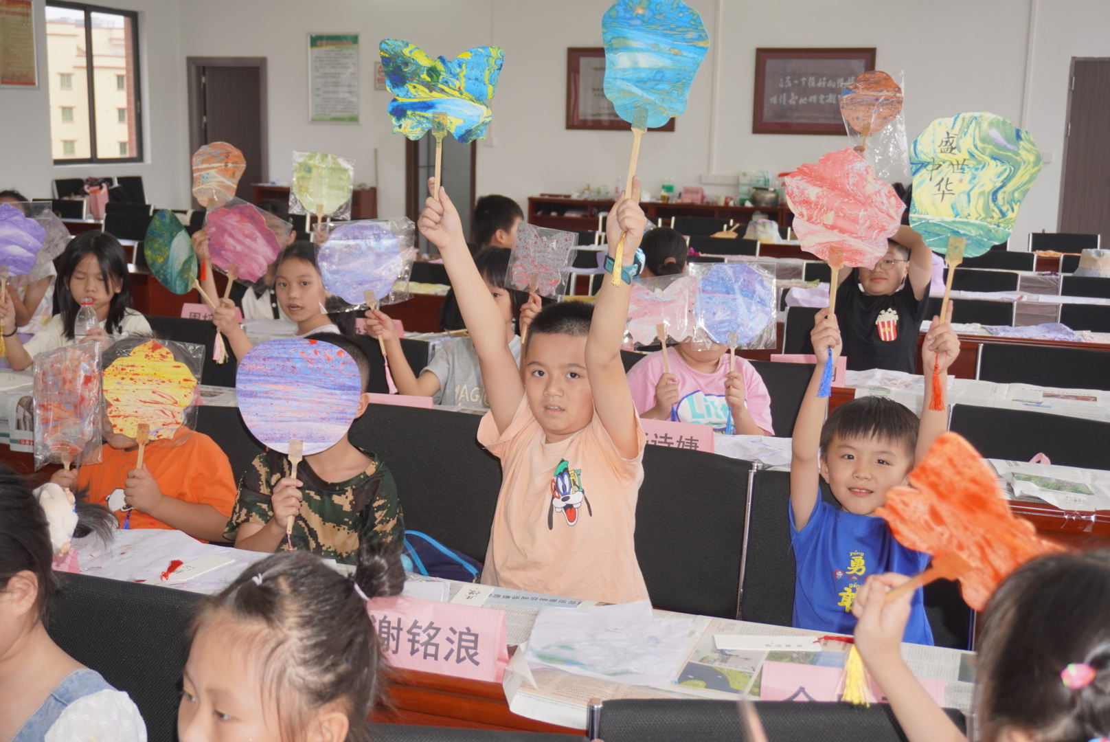 扎染课堂上,孩子们用棉线捆扎出无限可能,当纯白的布面在染料中绽放出星辰般的纹路,千年的非遗技艺焕发出崭新的光彩。漆扇制作中,彩漆在水面晕染成虹,轻轻一蘸便让扇面定格流动的时光,匠心温度通过指尖传递。“五谷艺术绘”中,颗颗种子拼贴出祖国版图,让孩子们在认识农作物之余,更深刻理解“粒粒皆辛苦”的深意。