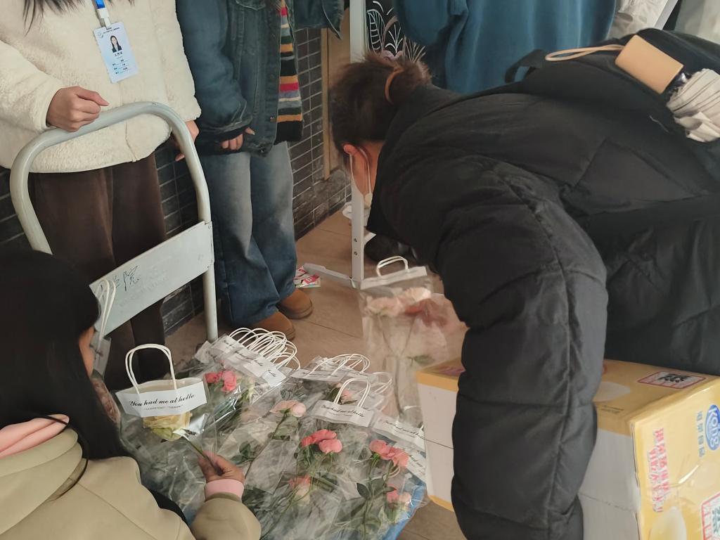 参与者领取专属便签,书写对自己、对母亲、对女性榜样的鼓励与祝福。字句间有致敬伟大母亲的感恩,有对女性同伴的共勉,亦有对自我成长的期许。张张便签汇聚成一面“暖心墙”,成为节日里最温情的风景。完成留言的师生可领取鲜花、定制钥匙扣等精美小礼物。每一份礼物均附赠手写祝福卡,愿节日的温暖随花香与心意长存心间。