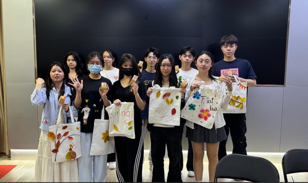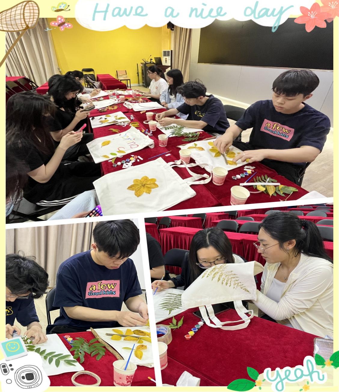 在室内共创环节中,同学们通过自然物分享展开心灵对话:金黄的银杏叶诉说着坚韧,凋零的花朵引发对生命的思考。随后的拼贴画创作中,大家将树叶花瓣化作绚丽彩虹等诗意图案。这些充满灵性的作品不仅是创意结晶,更成为照见内心的明镜。最后围坐分享的环节,让每个人都在艺术创作和交流中获得独特的心灵疗愈。