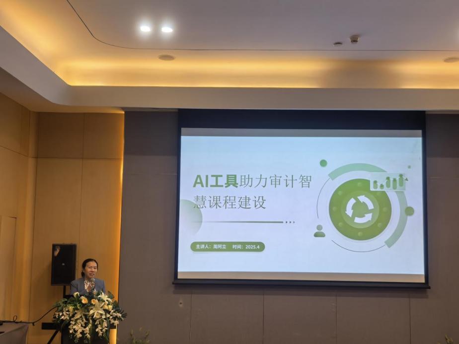 中南财经政法大学会计学博士周阿立副教授以《AI工具助力审计智慧课程建设》为主题报告,周教授聚焦于AI人工智能如何赋能智慧审计课程的内核构建与规划布局,深入剖析了AI工具在革新课堂教学设计及推动教学改革中的关键作用,系统阐述了AI技术与教育教学深度融合的创新理念和实践路径。报告中,周教授引入大量丰富且贴合实际的案例,生动形象地展示了AI技术工具如何为传统课堂注入新的活力,为参会人员提供了极具价值的可借鉴教学范式,也为财经教育的数字化转型带来了深刻的前瞻性思考,有效推动了“教”与“学”的创新发展,全面提升了教学水平与课程建设质量。