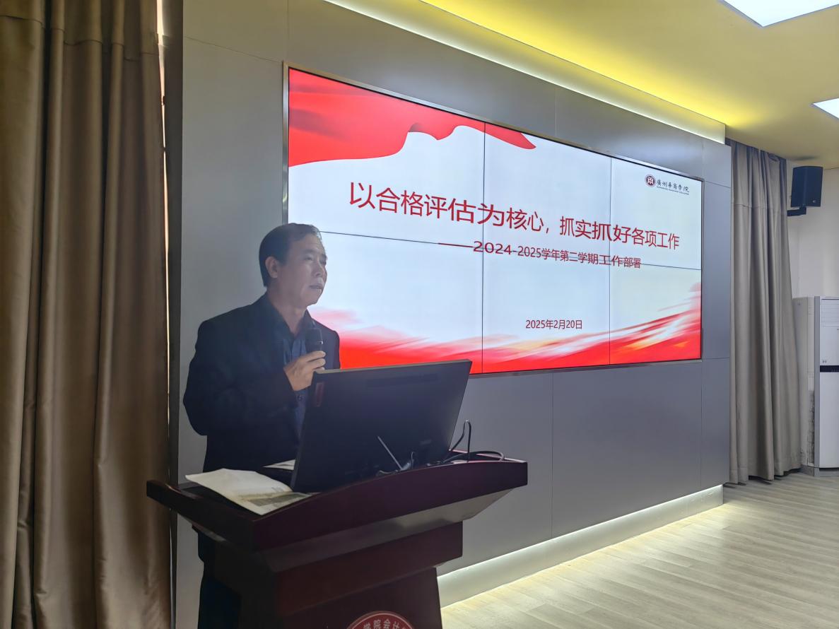 2月20日,太阳成tyc9728集团在学院报告厅召开2025年春季学期开学合格评估工作部署会,会议由副院长周书域主持。学院领导班子及全体教师齐聚一堂,共同开启新学期的新征程。
