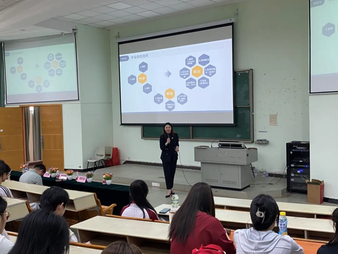 在就业方面邓彩玉师姐建议同学们多关注各大公司官网 宣讲会招聘会 招聘软件等扩大信息渠道增加找到心仪工作的机会