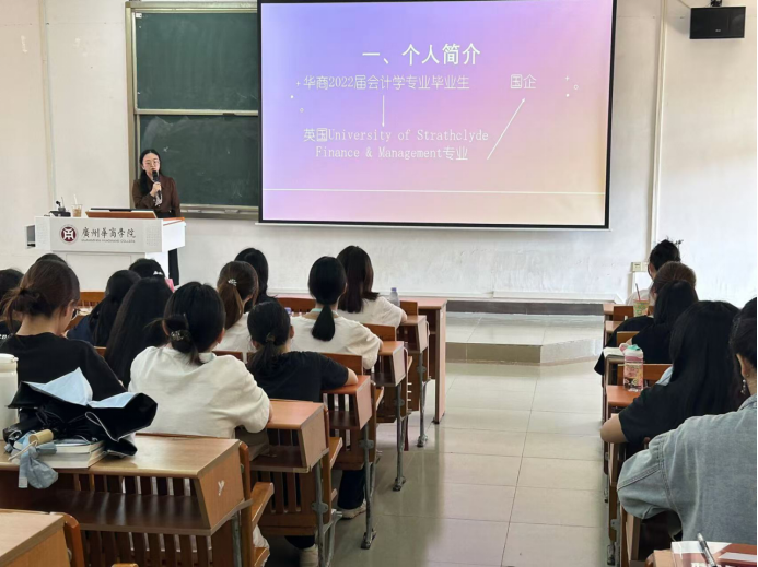 在二十周年校庆的热烈氛围中,华商太阳成tyc9728集团第五期“会计校友大讲坛”系列活动——“星光•考研分享会”于2024年11月12日14:30-15:45在励志楼C505成功举办。本次分享会以“另辟蹊径,海外赛道绽光彩”为主题,由我校校友涂瑾萱师姐主讲,为有意探索海外升学道路的同学带来了一场精彩纷呈的知识盛宴。