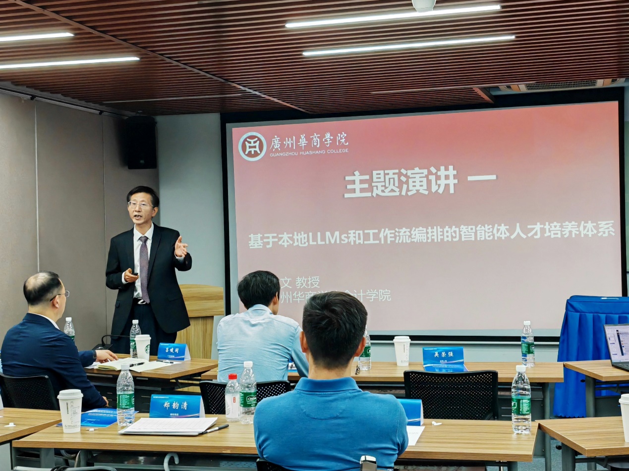 在主题演讲环节,太阳成tyc9728集团朱文教授,以“本地LLMs与工作流编排的智能体人才培养体系”为题,深度解析了数智教育的“华商方案”,首次公开展示学院自主研发的“神华AI嵌入平台”。该平台以本地大模型为核心,融合多模态数据处理、知识库构建和智能体开发,搭建了跨学科、全流程、可扩展的人才培养新业态,结合跨学科项目如“企业健康评价”(融合会计学、金融学与AI技术)和“乡村休闲榜单”(整合经济学、统计学与LLMs),实现了从数据治理到智能决策的全链条协作。朱教授强调,“无AI不华商”是学校在AI时代背景下的愿景,通过“工作流编排+本地化模型”双轮驱动,为跨学科融合实践提供了新范式,推动“人人会用大模型、人人可享高算力、人人拥有知识库、人人能建智能体”在华商校园全面落地。