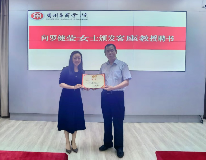 首先,姚凤民院长为本次讲座致辞,对罗健莹女士莅临华商学院举行讲座表示热烈欢迎。罗健莹女士是华商学院客座教授,在毕马威从事税务服务工作 20 余年,具有非常丰富的税务咨询和税务服务经验。姚院长勉励同学们,这次讲座帮助大家把税收理论知识与实务经验相结合,同学们要利用好这次机会,了解税务行业的发展动态和工作内容,为职业职业规划打好坚实基础。最后,姚院长为罗健莹女士颁发了客座教授的聘任聘书。