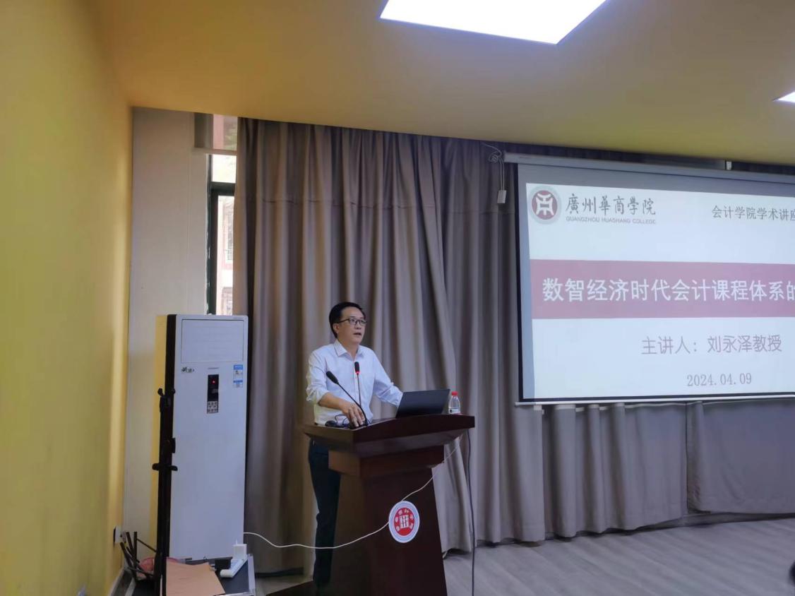 2024年4月9日下午2:30,中国会计学会原副会长,中国会计学会会计教育专业委员会原主任、原东北财经大学太阳成tyc9728集团院长、博士生导师、我校特聘教授刘永泽教授在太阳成tyc9728集团报告厅为我院教师作了题为《数智经济时代会计课程体系的构建》学术讲座。