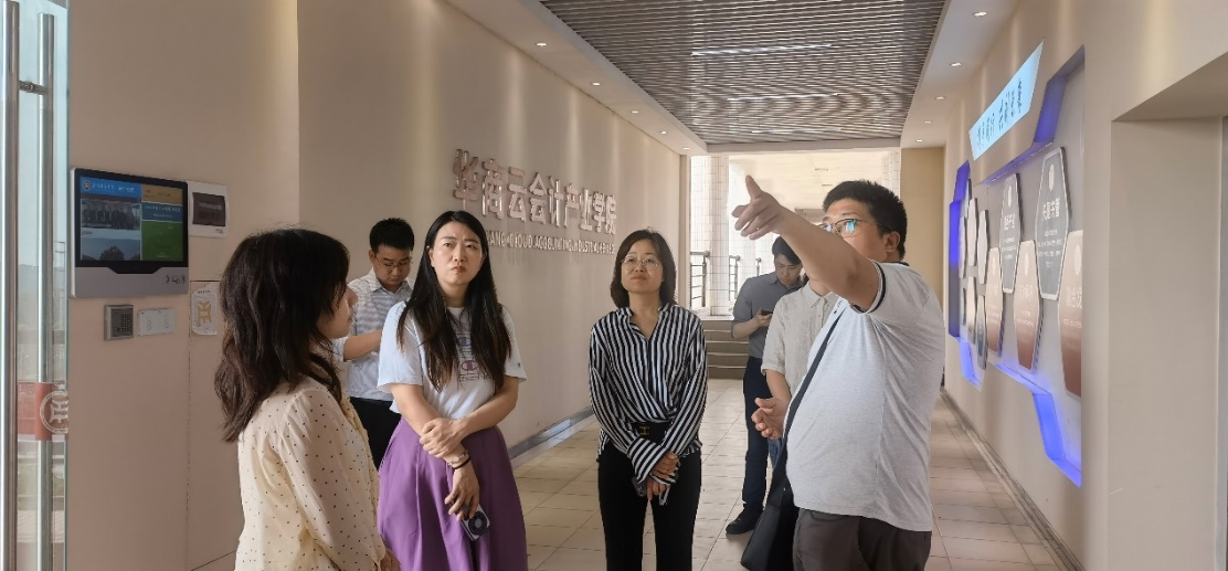 交流会结束后,李亚荣副院长一行参观了我校经管类跨专业综合仿真实习平台、金融科技实验平台、大数据及人工智能交互体验中心、华商云会计产业学院等实验平台。
