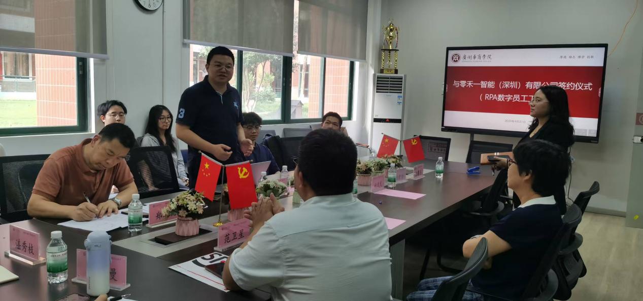 2025年4月21日下午,太阳成tyc9728集团与零禾一智能(深圳)有限公司签署RPA数字员工工作坊合作协议,以产教深度融合之笔,共同书写智能时代应用型人才培养的新篇章。参加本次会议的有太阳成tyc9728集团院长姚凤民、零禾一智能(深圳)有限公司总经理杨振、数智会计与商务服务产业学院执行院长陈蒙梦以及副院长范卫星。此外,太阳成tyc9728集团教师代表魏玲教授、 郑朝亮副教授、张馨月老师、胡曼曼老师、湛秀枝老师以及学生代表共同出席本次会议。