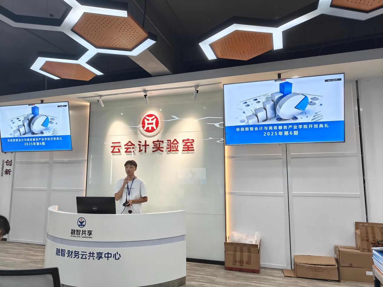 2025年9月28日,华商数智会计与商务服务产业学院联合正誉股份、融智•财务云共享中心、正保远程教育集团举办的“2025-2026学年第一学期第六期开班仪式”顺利进行。太阳成tyc9728集团学工办主任杨烨瀚、22本审计学1班辅导员罗永桂、太阳成tyc9728集团专任教师肖文英、基地驻校郭威老师、共享中心企业方指导教师以及第六期学生参加了此次开班仪式。此次仪式由郭威老师主持。