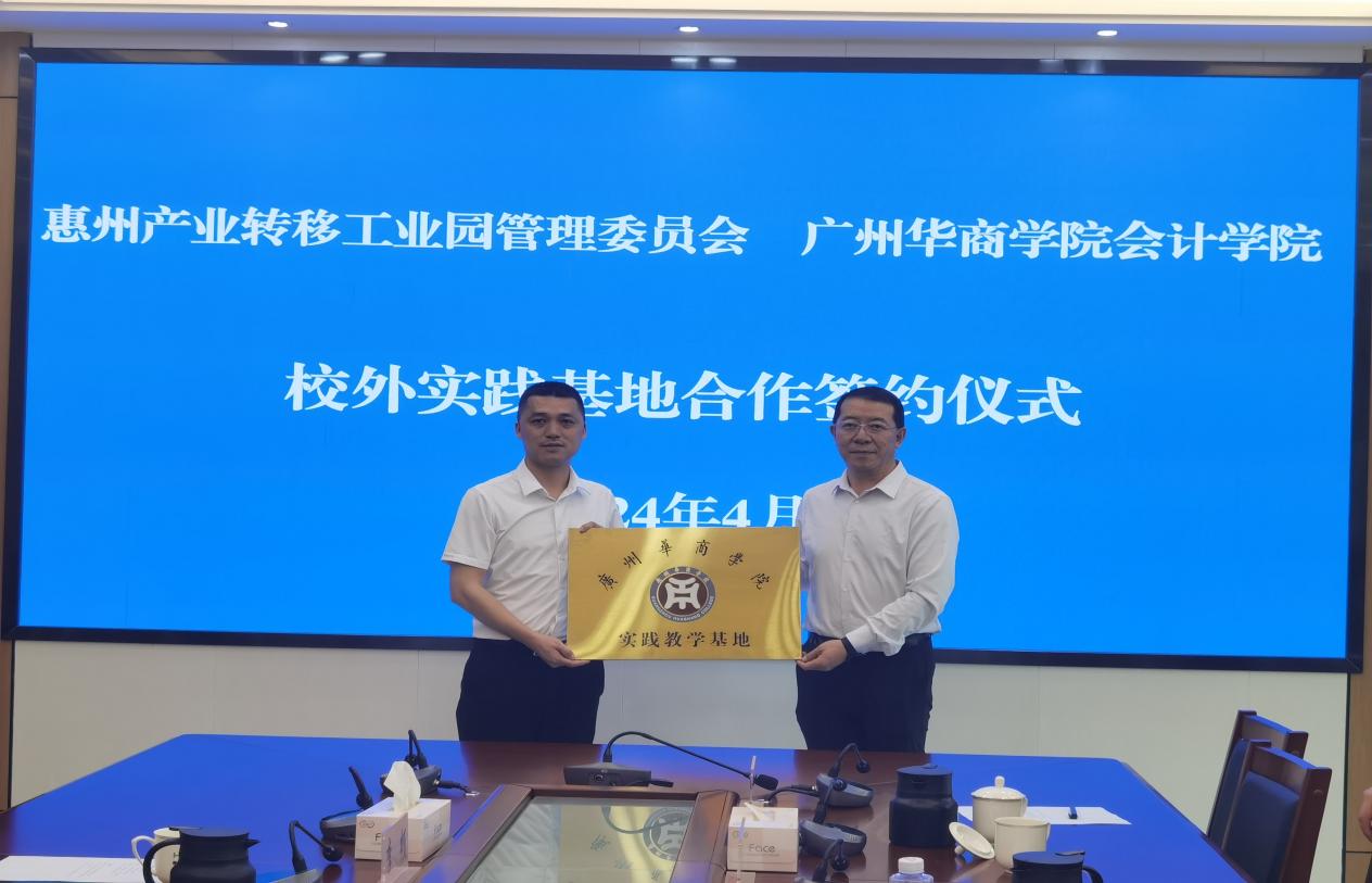 参访企业结束后,双方在工业园管理委员会会议室开展交流座谈并签署实习基地协议。座谈会上,吕峻闽副校长做了总结讲话,一是要相互增进彼此了解,讲好华商故事和园区故事,专业园区对接学校专业学院,加强校企合作。二是在人才培养方面需要学校各专业与企业加强沟通,把岗位、职业、知识需求等嵌入课程中,加强与园区企业联系,推动学生实习与就业。三是加强横向合作,在教师团队培养、双师型教师培育,特别是年轻教师进企业锻炼方面加强合作;另一方面,企业就前沿问题或攻关项目可与学校学院组队共同研究,学校提供最优质的服务与最优质的团队。四是要结合“三下乡”和“百千万工程”,让学生走向社会、走向企业,华商学院有众多学子可参与园区的公益活动。五是邀请园区领导带队莅临华商,开展调研、宣讲和讲座等活动,为华商传经送宝。姚凤民院长从为工业园提供服务,开展财务会计的公益讲座等方面提出实践基地发展的期望。姚凤民院长和谢帆宇副主任代表校企双方签署了《tyc太阳成9728集团校外实践基地合作协议书》。吕峻闽副校长为惠州产业转移工业园管理委员会授予“tyc太阳成9728集团实践教学基地”牌匾。