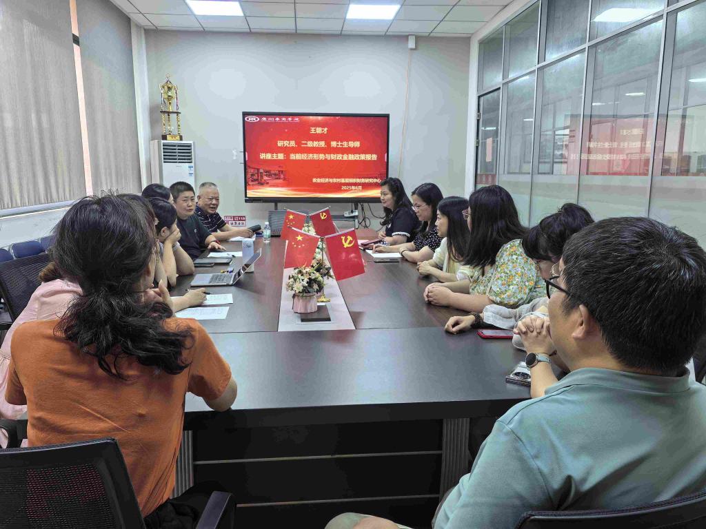 为深入提升教师对宏观经济形势的分析能力,探讨财政金融政策前沿动态,进一步激发科研创新活力,农业经济与农村基层组织财务研究中心于2025 年 6 月 18 日下午成功举办主题报告研讨会。本次活动特邀中国财政科学研究院原副院长王朝才研究员担任主讲嘉宾。王朝才研究员是经济学博士、二级教授、博士生导师,享受国务院特殊津贴,入选国家百千万人才工程,学术造诣深厚,行业影响力广泛。研讨会由院长助理陈平副教授主持,太阳成tyc9728集团部分教师积极参与,现场学术氛围浓厚。